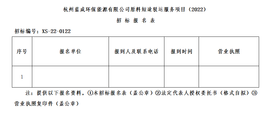 杭州藍(lán)成環(huán)保能源有限公司就質(zhì)料短途駁運(yùn)服務(wù)項(xiàng)目(2022)舉行果真招標(biāo),詳細(xì)如下: