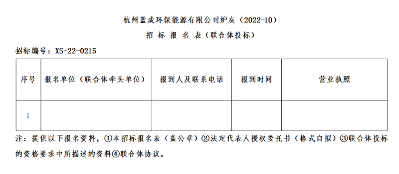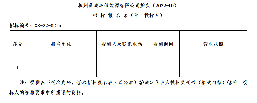 憑證杭州蕭山情形集團(tuán)物資招標(biāo)管理要求,杭州藍(lán)成環(huán)保能源有限公司對“杭州藍(lán)成環(huán)保能源有限公司爐灰(2022-10)”舉行果真招標(biāo)。