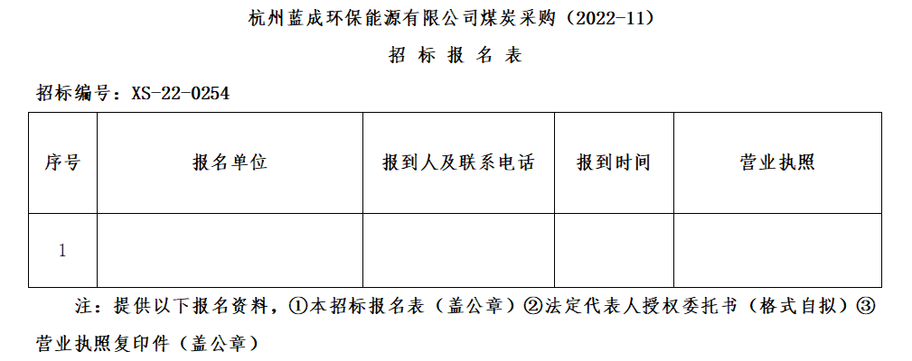二、招標(biāo)項(xiàng)目:杭州藍(lán)成環(huán)保能源有限公司煤炭采購(gòu)(2022-11)。