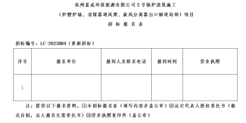 七、招標(biāo)答疑時間:投標(biāo)人對招標(biāo)文件若有疑問,請于2023年3月5日16時00分前以書面形式(可傳真、掃描件)并加蓋公章提交杭州藍(lán)成環(huán)保能源有限公司。