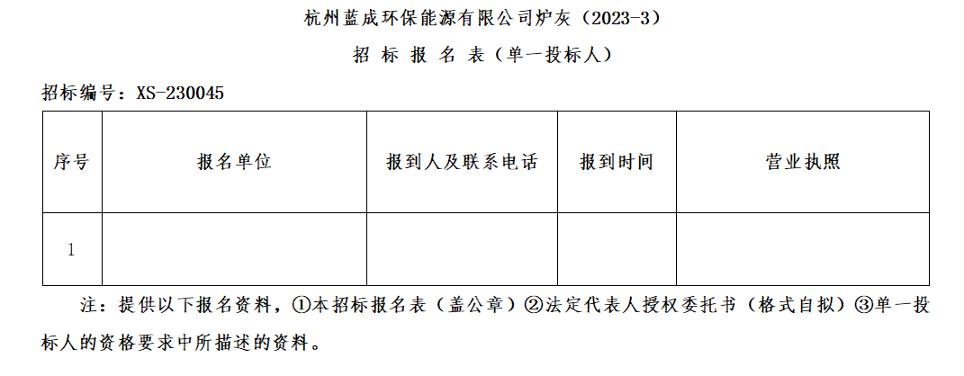 憑證杭州蕭山情形集團(tuán)物資招標(biāo)管理要求,杭州藍(lán)成環(huán)保能源有限公司對(duì)“杭州藍(lán)成環(huán)保能源有限公司爐灰(2023-3)”舉行果真招標(biāo)。