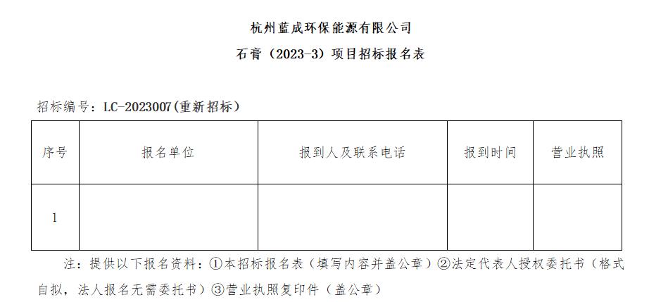 杭州藍(lán)成環(huán)保能源有限公司,憑證杭州蕭山情形集團(tuán)物資招標(biāo)管理要求,對(duì)杭州藍(lán)成環(huán)保能源有限公司石膏(2023-3)項(xiàng)目舉行果真招標(biāo)。