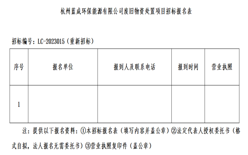 一、招 標(biāo) 人:杭州藍(lán)成環(huán)保能源有限公司,招標(biāo)編號(hào):LC-2023015(重新招標(biāo))。