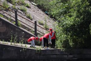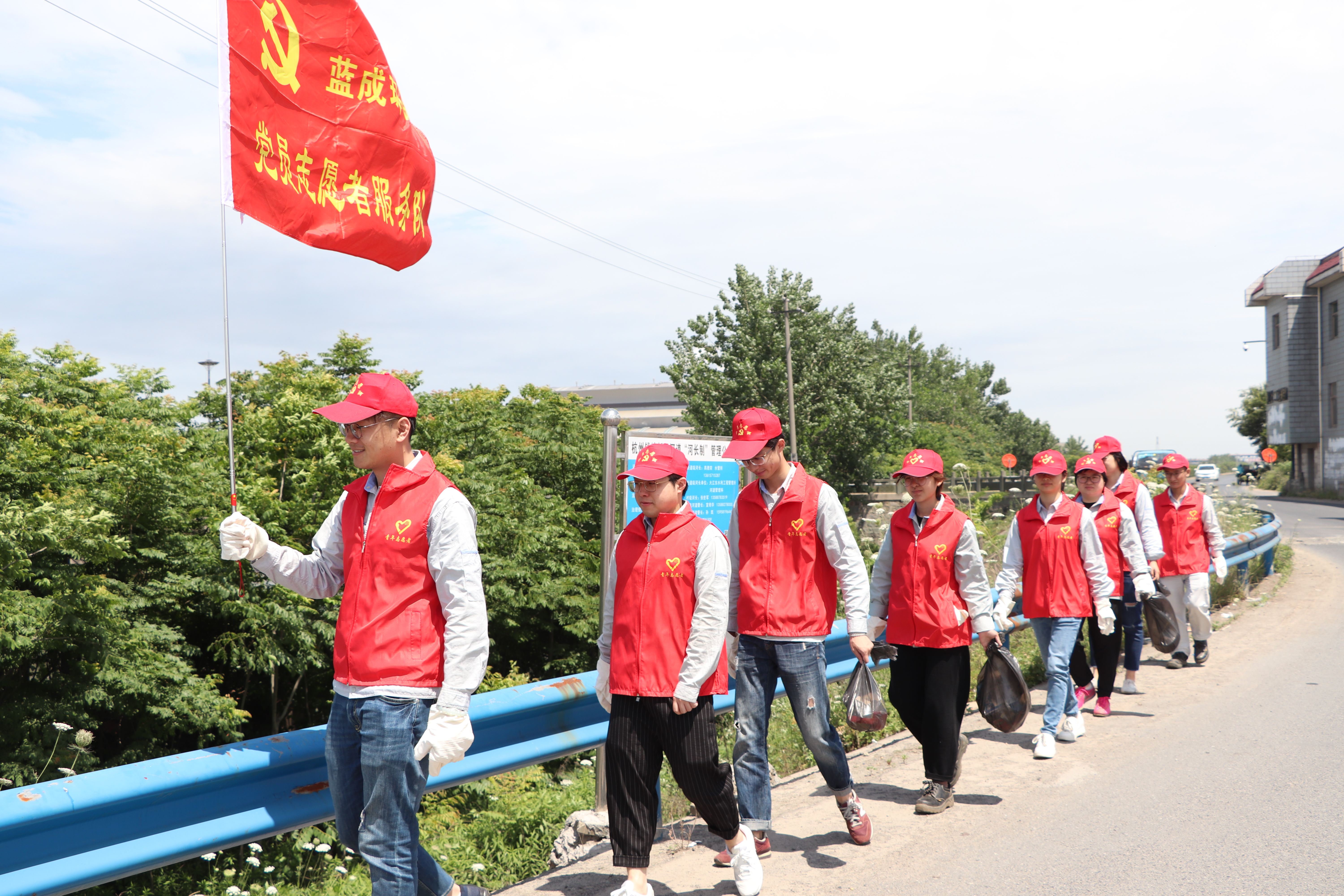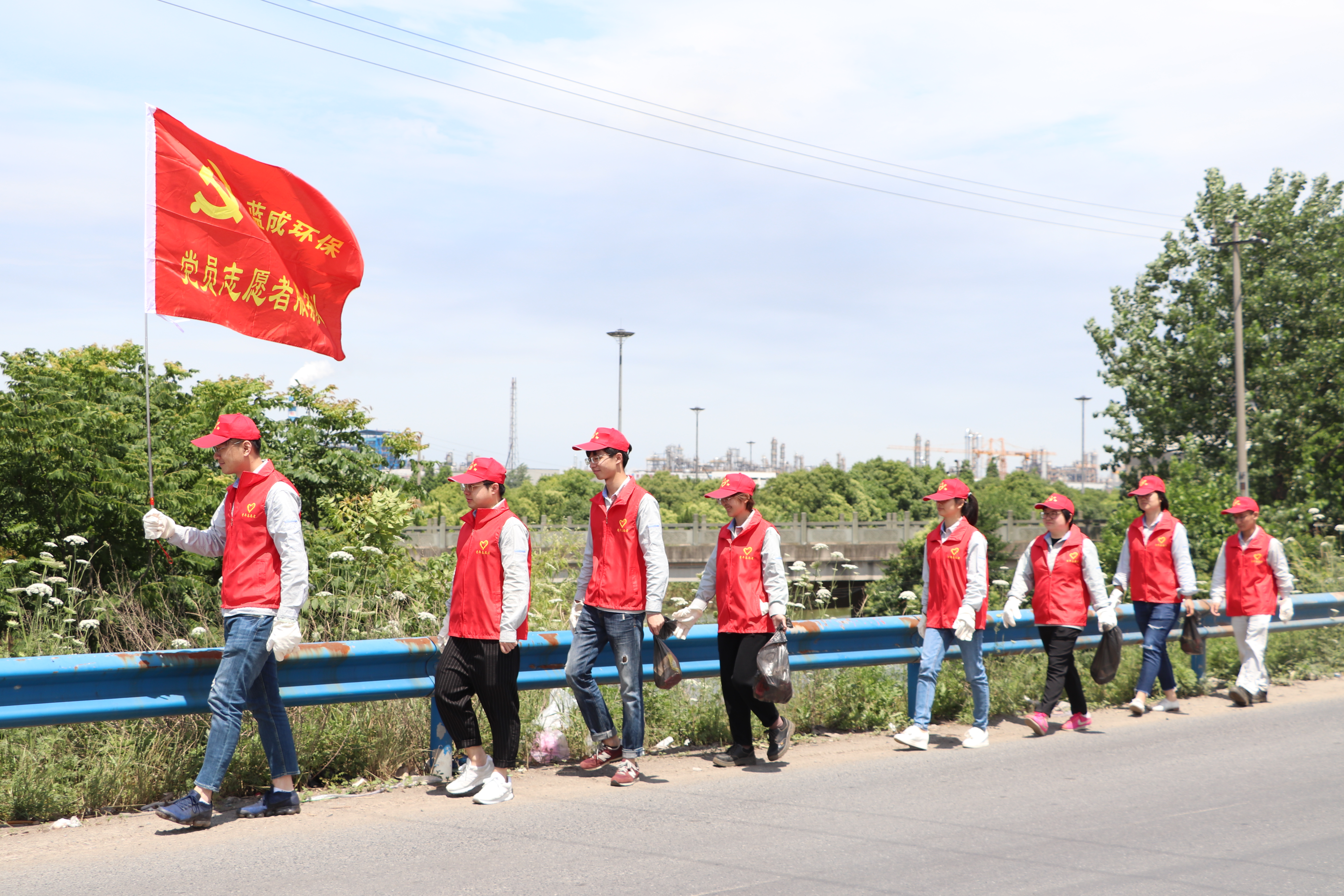 在天下情形日即將到來之際,藍(lán)成環(huán)保黨支部團(tuán)結(jié)公司團(tuán)總支,開展了“青春作伴巡河去”運(yùn)動(dòng),巡河隊(duì)員們身著紅色自愿服,帶著小紅帽,走在十七工段直河旁邊。