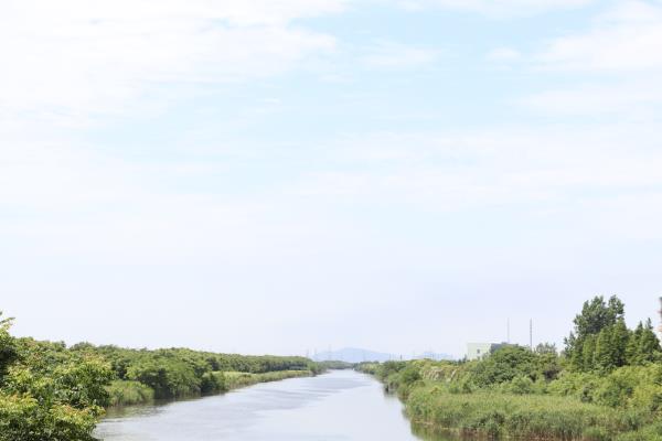 河水清清,倒影藍(lán)天白云