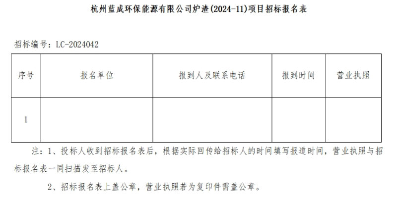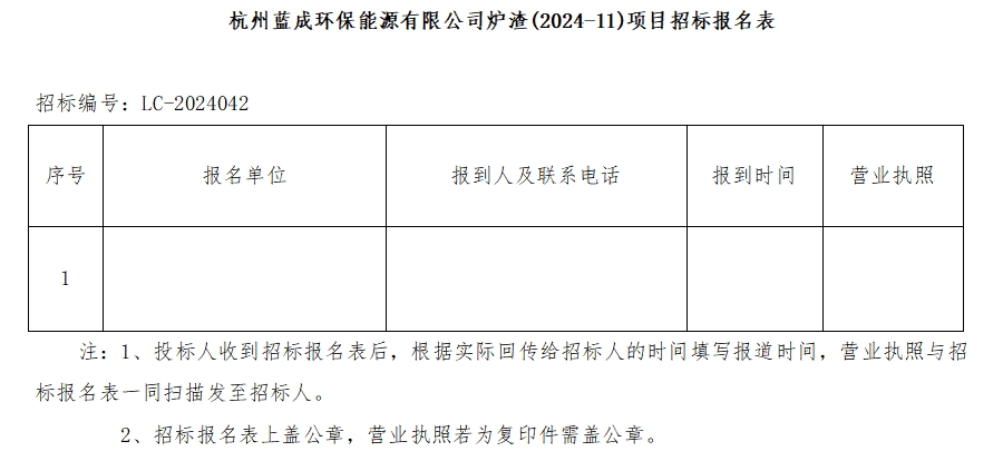 一、招 標 人:杭州藍成環(huán)保能源有限公司,招標編號:LC-2024042。