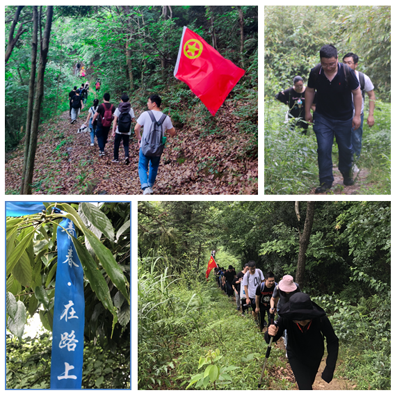 立夏時(shí)節(jié),江南暑氣入侵,時(shí)有雷雨。你看,適才照舊多云的天,中途突然下起了暴雨。但這沒(méi)有澆滅各人“一起向前”的刻意,在第一站點(diǎn)稍作期待后,各人整裝再出發(fā)。泥濘的小道,滑溜的石板,但依舊有前行的探路者,有小心路滑的聲音,有相互幫助的身影,以及在樹(shù)枝上掛著“正青春,在路上”的指路帶。