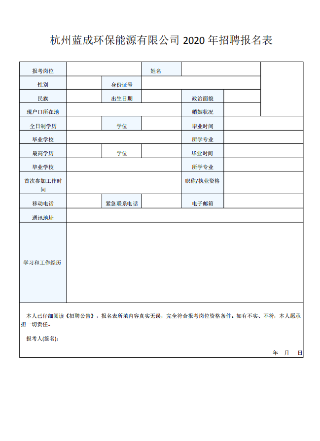 2、報(bào)名方法:請(qǐng)填寫康健允許書并按報(bào)名表要求認(rèn)真填寫相關(guān)信息,并將小我私家簡(jiǎn)歷、身份證、結(jié)業(yè)證書、學(xué)位證書等掃描件打包發(fā)送至郵箱:hzlanchenghuanbao@163.com;