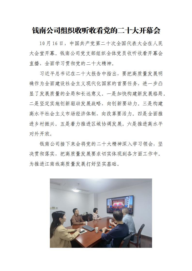 錢南公司組織收聽收看黨的二十大開幕會(huì)