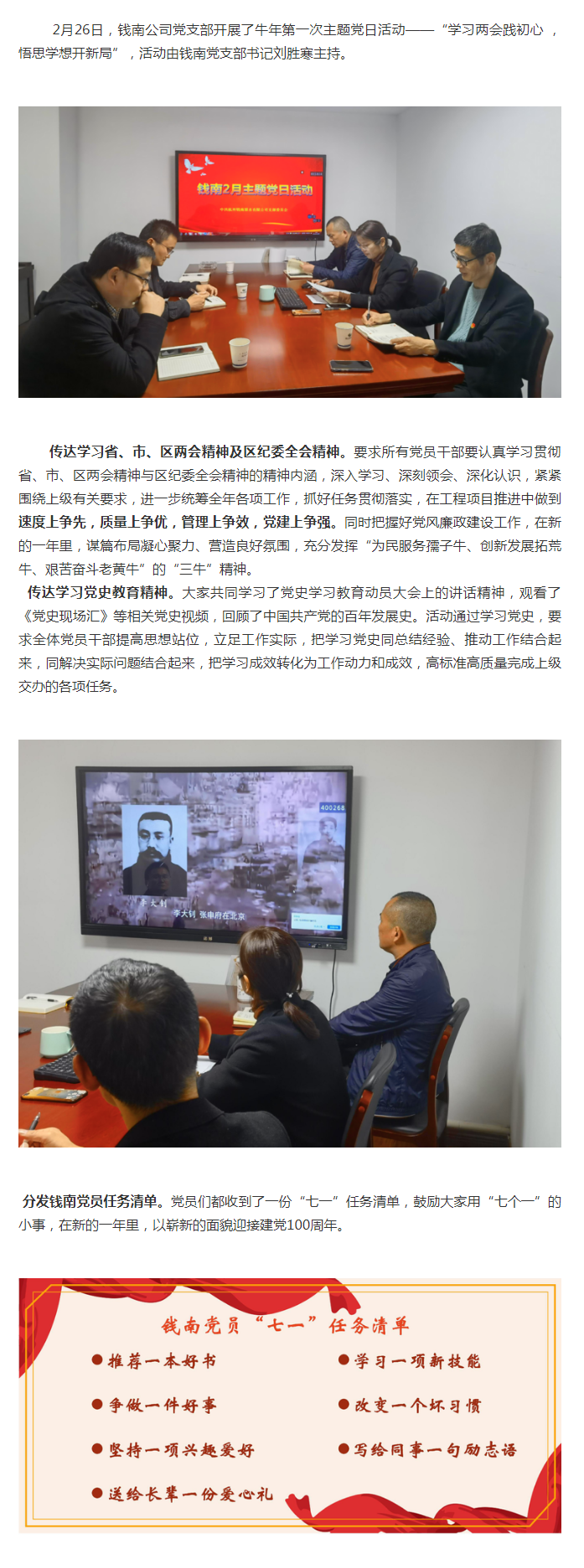 學(xué)習(xí)兩會(huì)踐初心 悟思學(xué)想開新局——錢南公司黨支部開展2月主題黨日運(yùn)動(dòng)