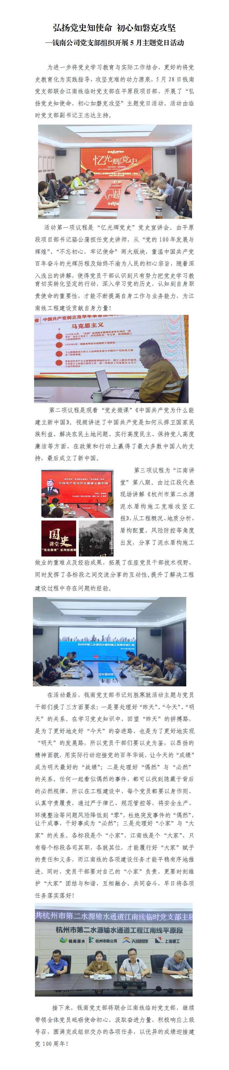 弘揚黨史知使命 初心如磐克攻堅—錢南公司黨支部組織開展5月主題黨日運動